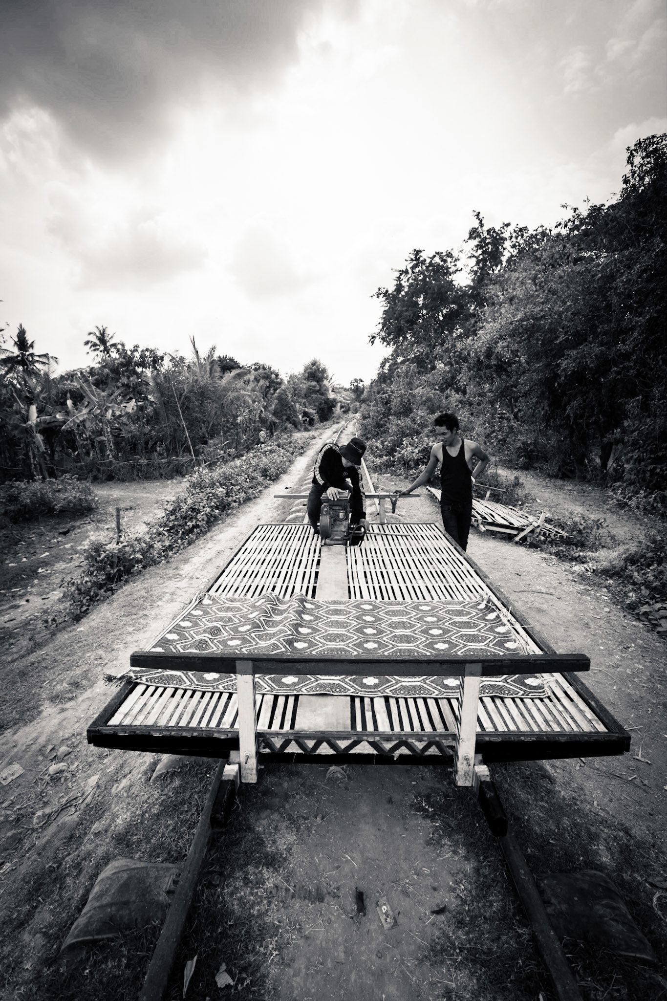 These "trains" are little more than bamboo platforms on wheels, with a small motor attached at the back. Locals use them to transport good into Battambang. There are plans to upgrade the track, possibly spelling the the current train's end.