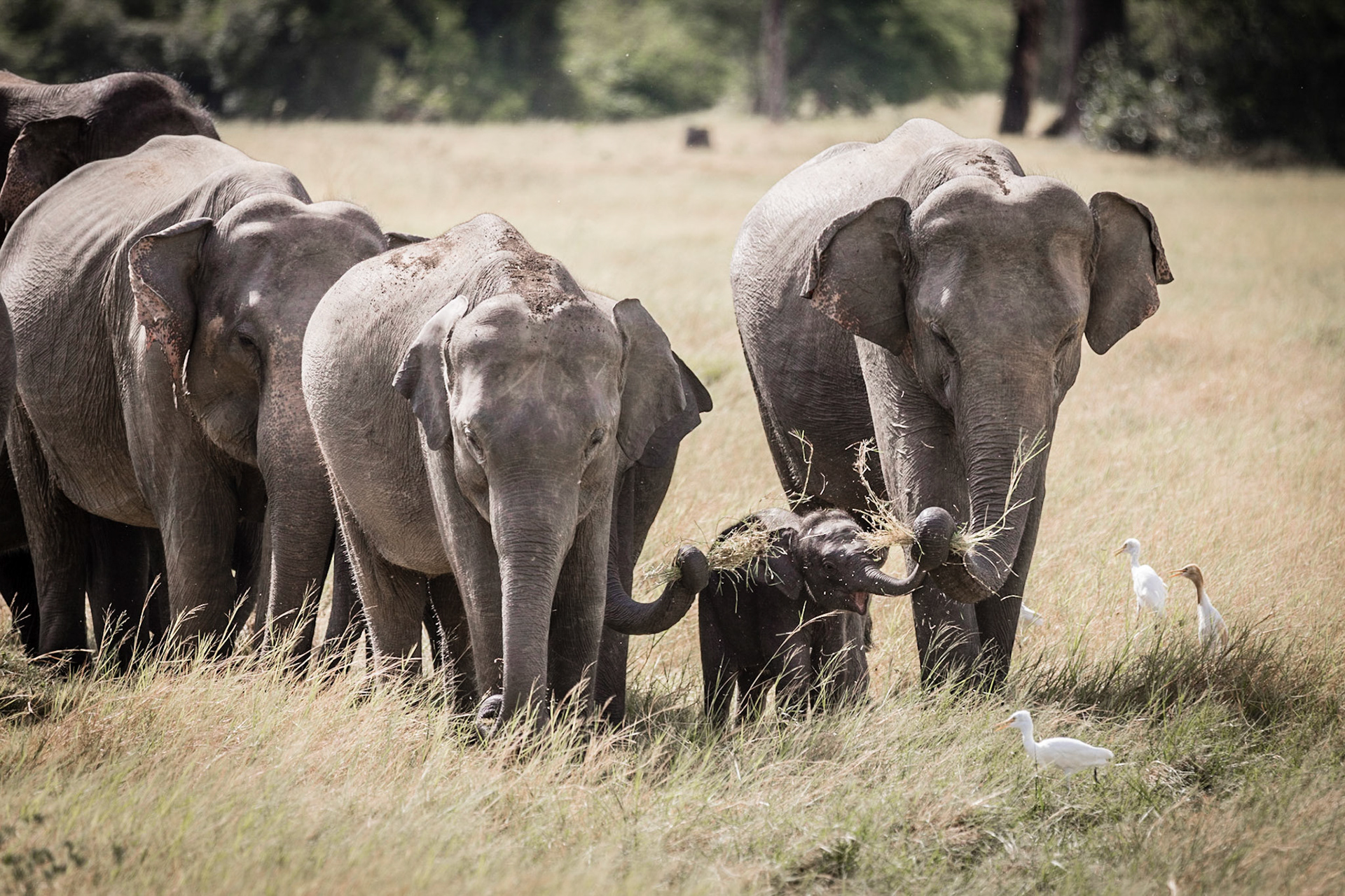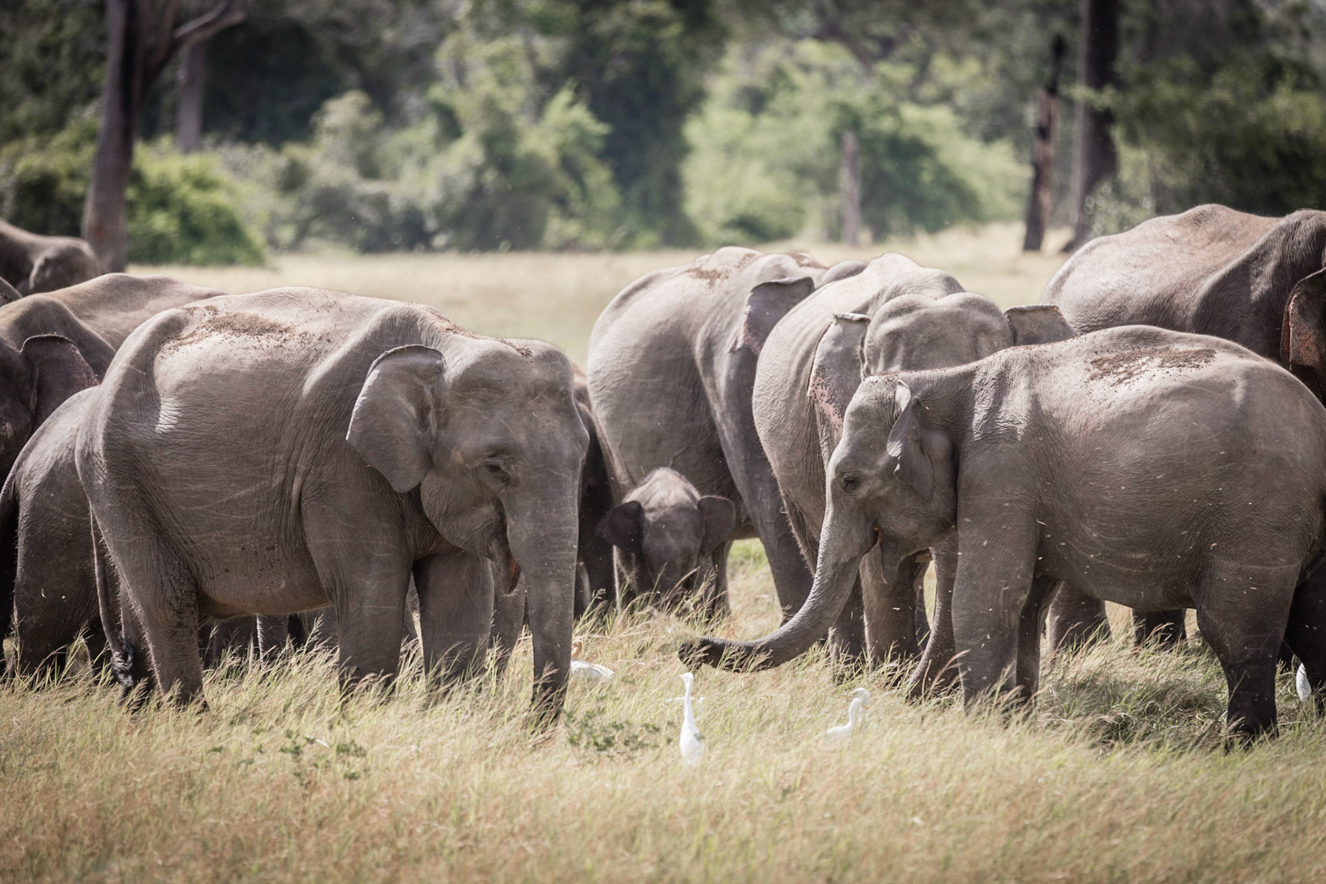 These elephants were crossing through Kaudulla National Park in northern Sri Lanka in the afternoon light.