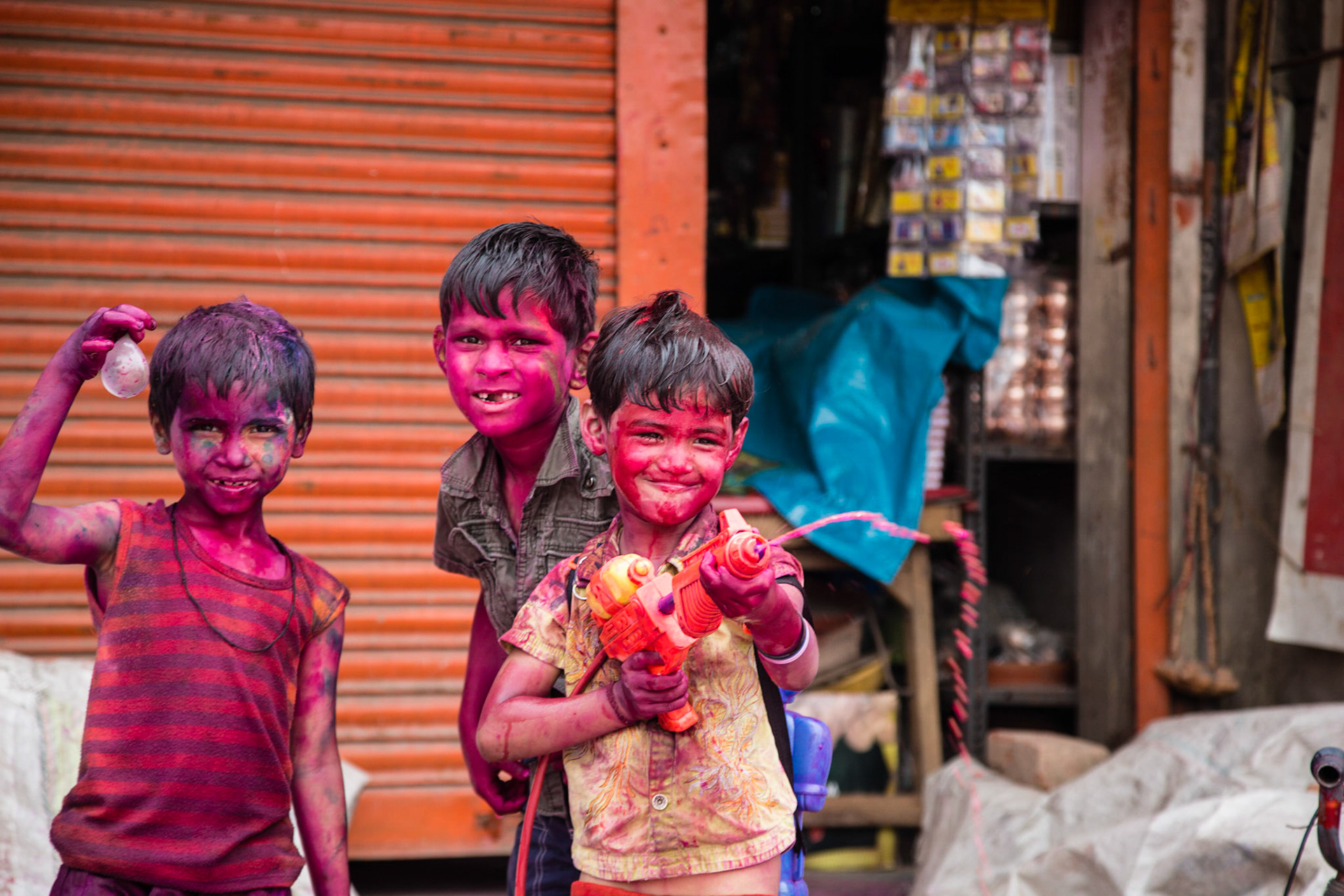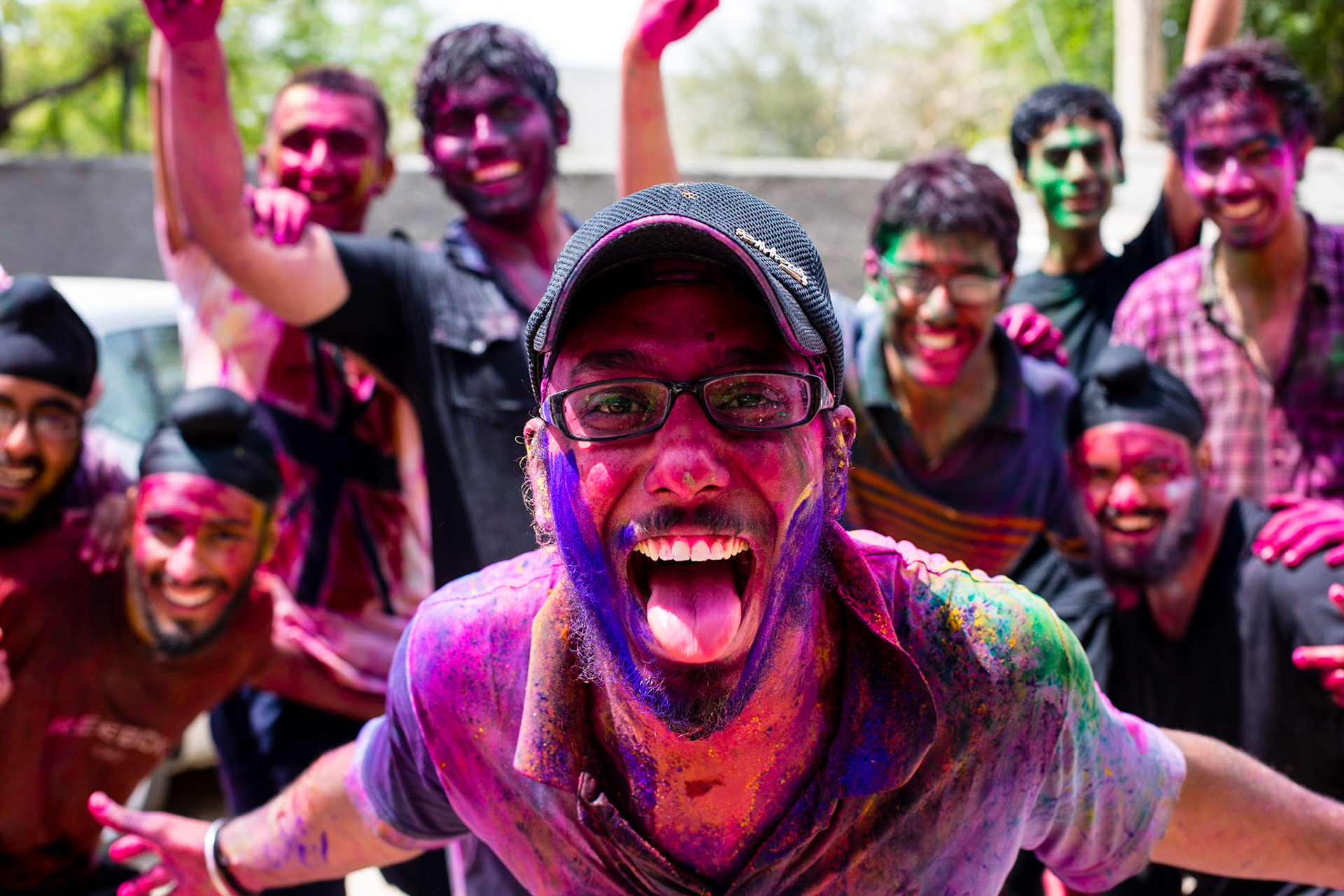 March 2013: Holi celebrated in the Green Park area, South Delhi, India.