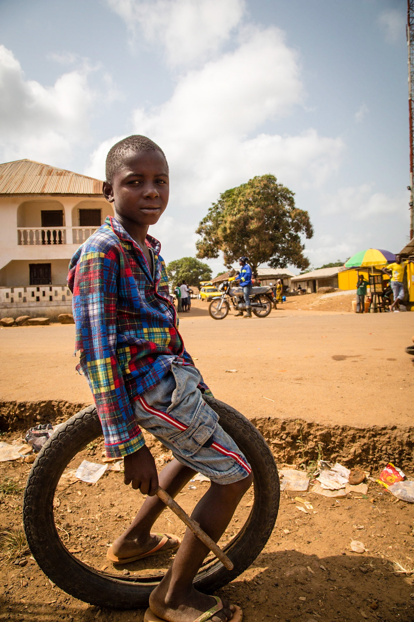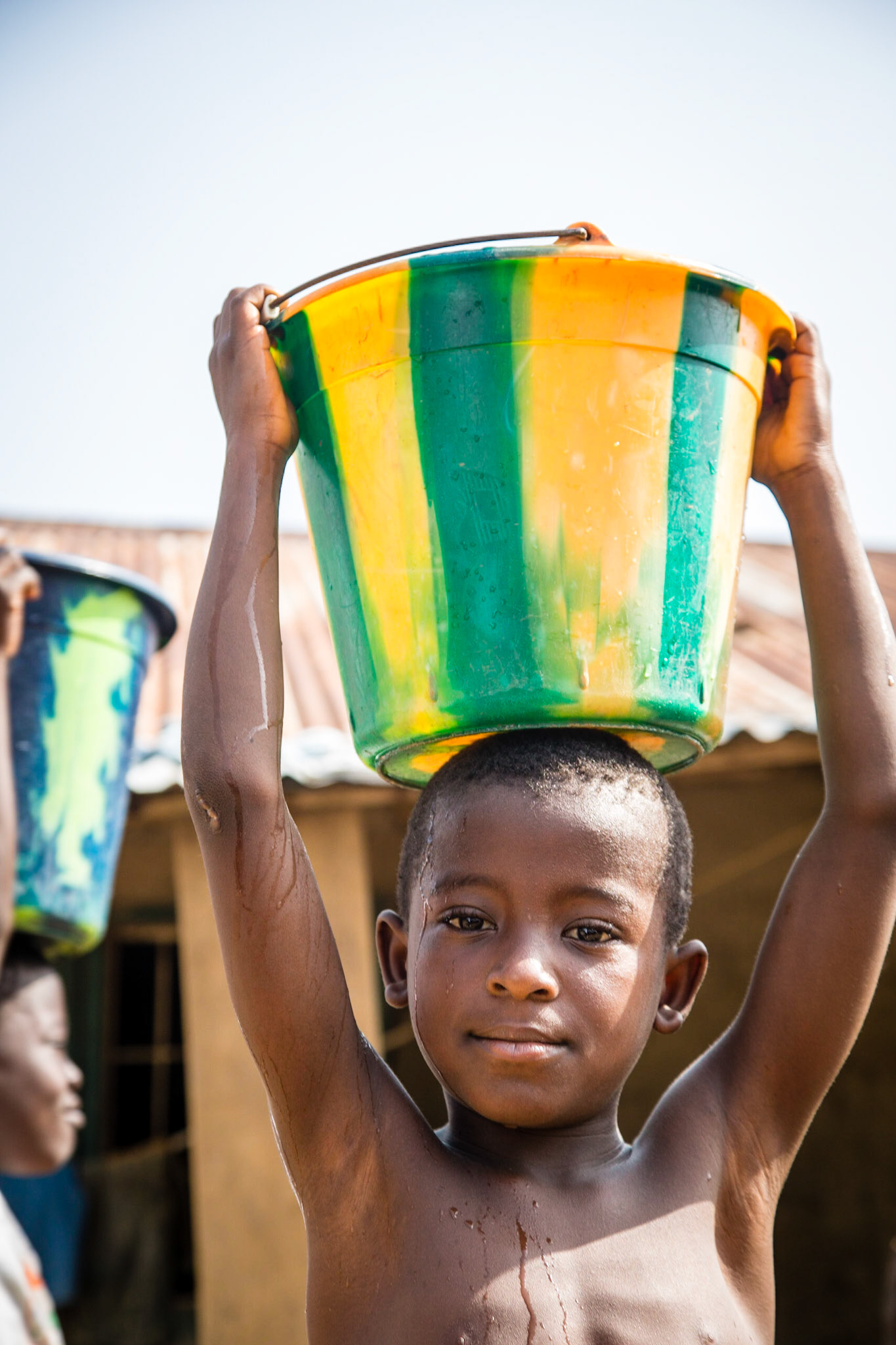 A boy carrys water in Grand Cape Mount.